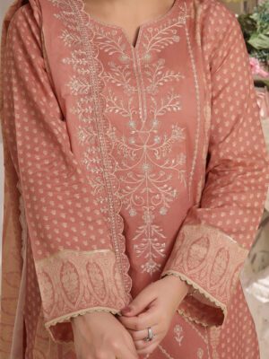 TOP QUALITY THREE PIECE DIGITAL EMBROIDERD AIRJET LAWN DRESS WITH EMBROIDERED DUPATTA